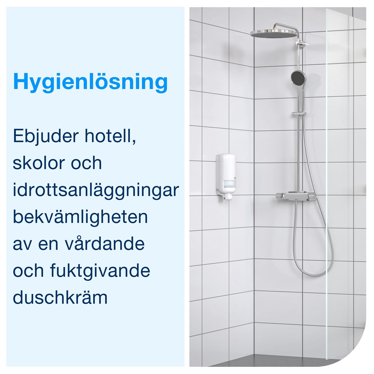 Flytande tvål för både kropp och hår. En 2-i-1-formula som innehåller vårdande och milda ingredienser. Med uppfriskande unisexdoft om ger huden och håret en mjuk och behaglig känsla. Har dokumenterats som mild för huden i hudtester. Flaskan krymper ihop efter hand som den används, vilket minskar avfallsvolymen. 1 liter. 6 st/förp.