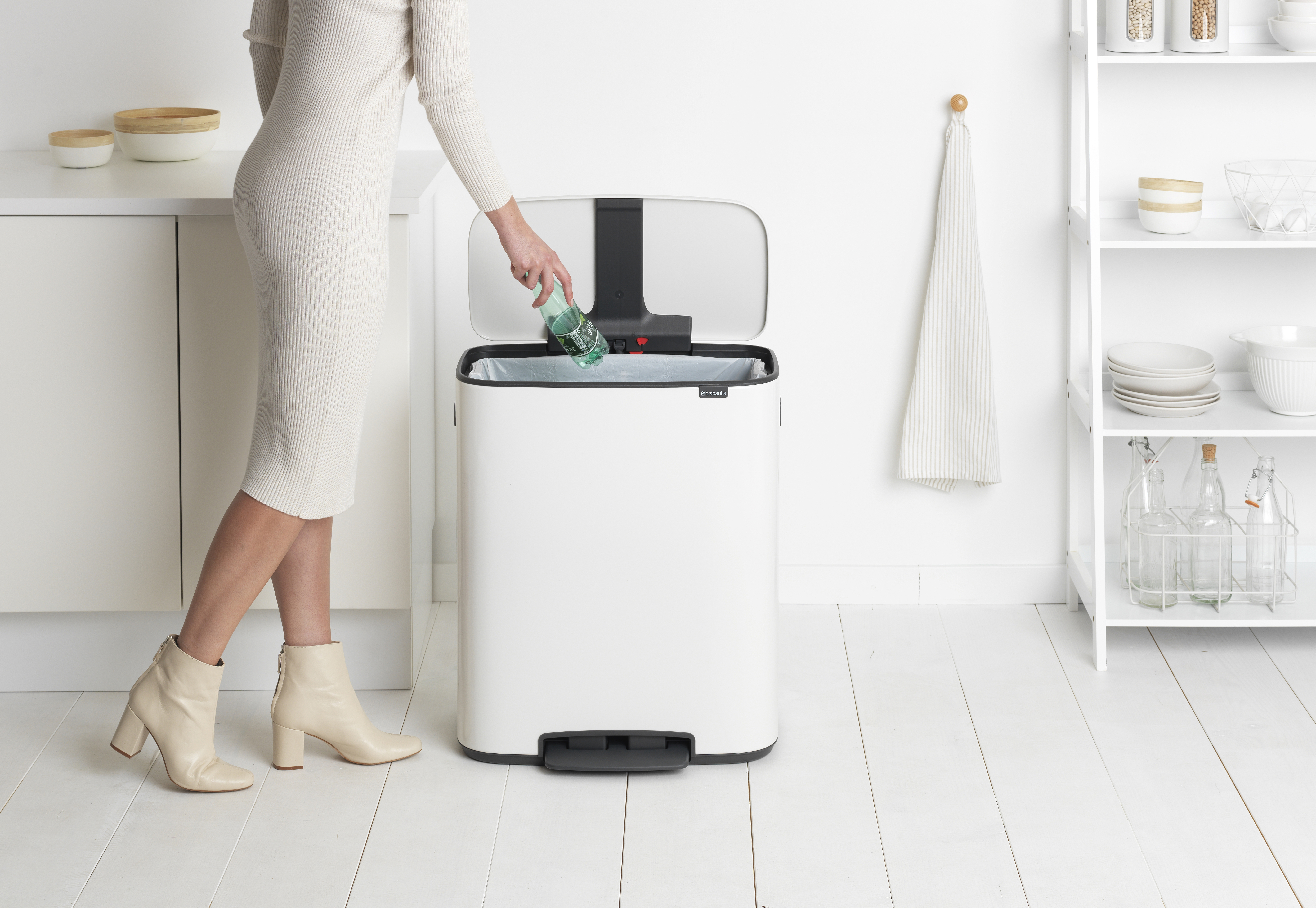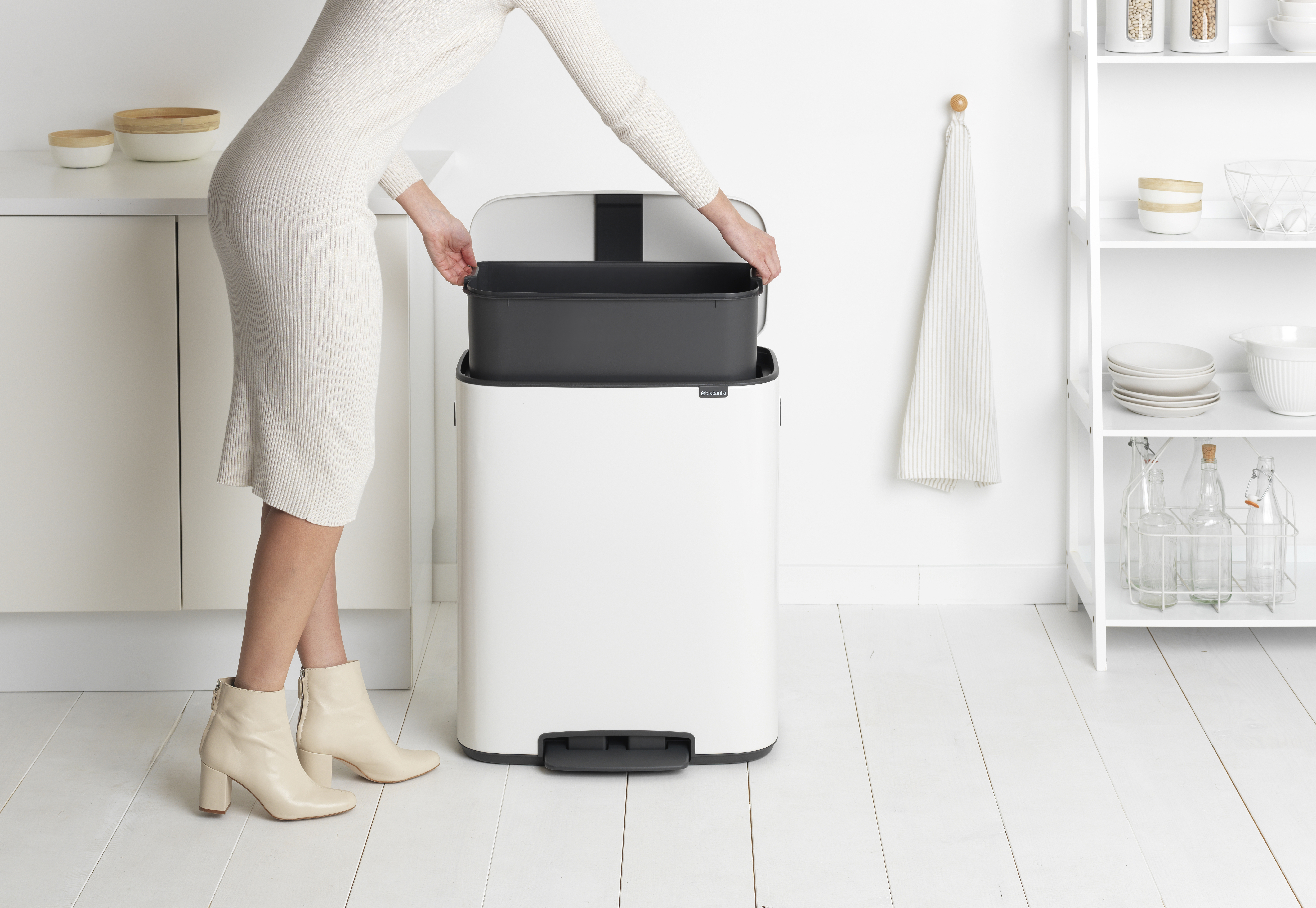 Smidig - ett mjukstängande lock med ett lätt tryck på pedalen Lätt att rengöra - en urtagbar plastinnerhink Lätt att flytta - två robusta integrerade handtag