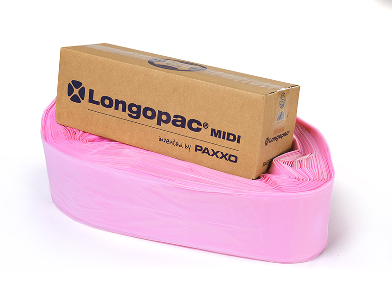 Ett golvställ för en mer hygienisk hantering då byte och förslutning sker från säckens utsida – ingen kontakt med avfallet. Mått H x B x D: 1055 x 650 x 595 mm. Inkastöppning: 330 x 340 mm. Laddas med säckkassett Longopac Midi.