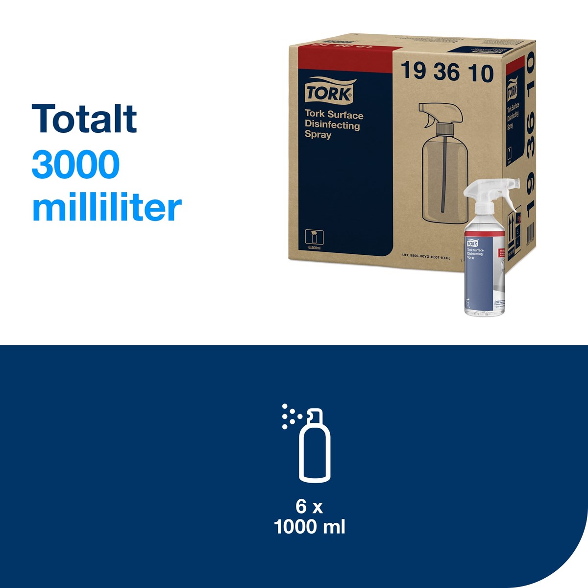 Desinfektera ytor på ett smidigt sätt med Tork Spray för ytdesinfektion som är effektiv mot en mängd bakterier, virus och jäst, inklusive coronavirus. Den har en biologiskt nedbrytbar formula som innehåller en 100% växtbaserad aktiv ingrediens (mjölksyra). Sprayen är fri från alkohol, och är godkänd för ytor som har livsmedelskontakt. Flaskan är utrustad med ett munstycke med dubbla funktioner (för både spray och skum). Den rymmer 500 ml och kan användas som den är.
