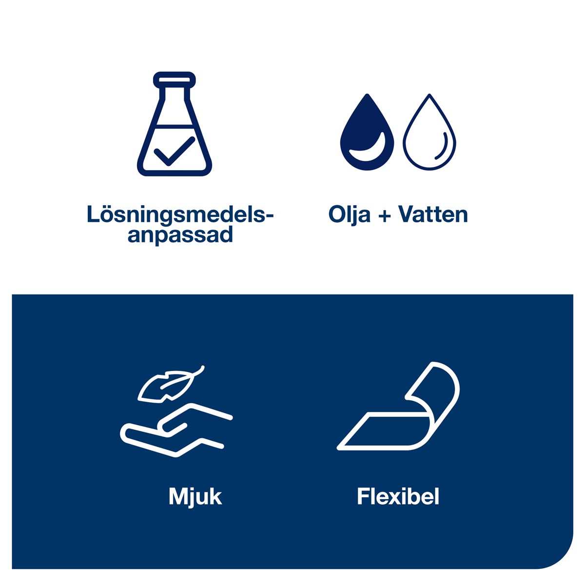 Mjuk och flexibel rengöringsduk För lättare till medelsvår industriell rengöring Tar bort olja, fett, vatten exelCLEAN® minskar konsumtionen av lösningsmedel med upp till 41 % Utmatning av en duk i taget minskar avfallet