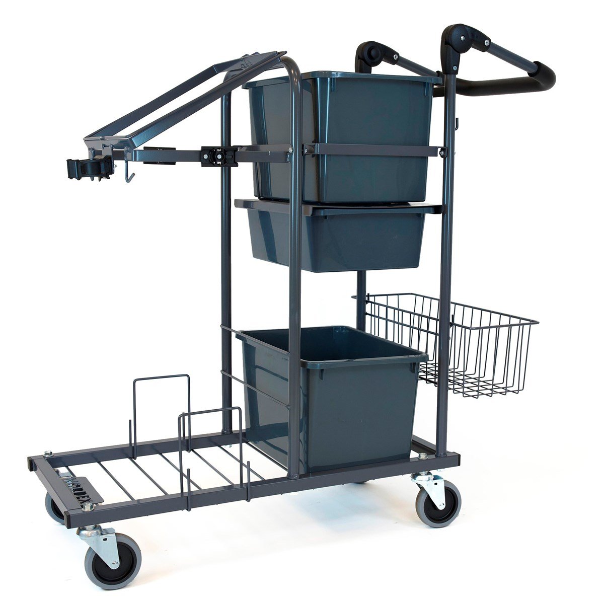 Komplett med 2 st stora plastlådor (20 l), 1 st mindre plastlåda (10 l), 1 st korg Mellan med två placeringsalternativ, krokar för moppsäck, 1 st hållare för sopsäck, 2 st stöd för moppstativ och 1 st Toolflex One-hållare för ex. golvmopp, samt 2 st Toolflex One adaptrar för valfria Toolflex One-tillbehör (säljs separat). 4 st 100 mm hjul varav ett bromsat. Mått LxBxH: 95x38x101 cm. Vikt 13,95 kg.
