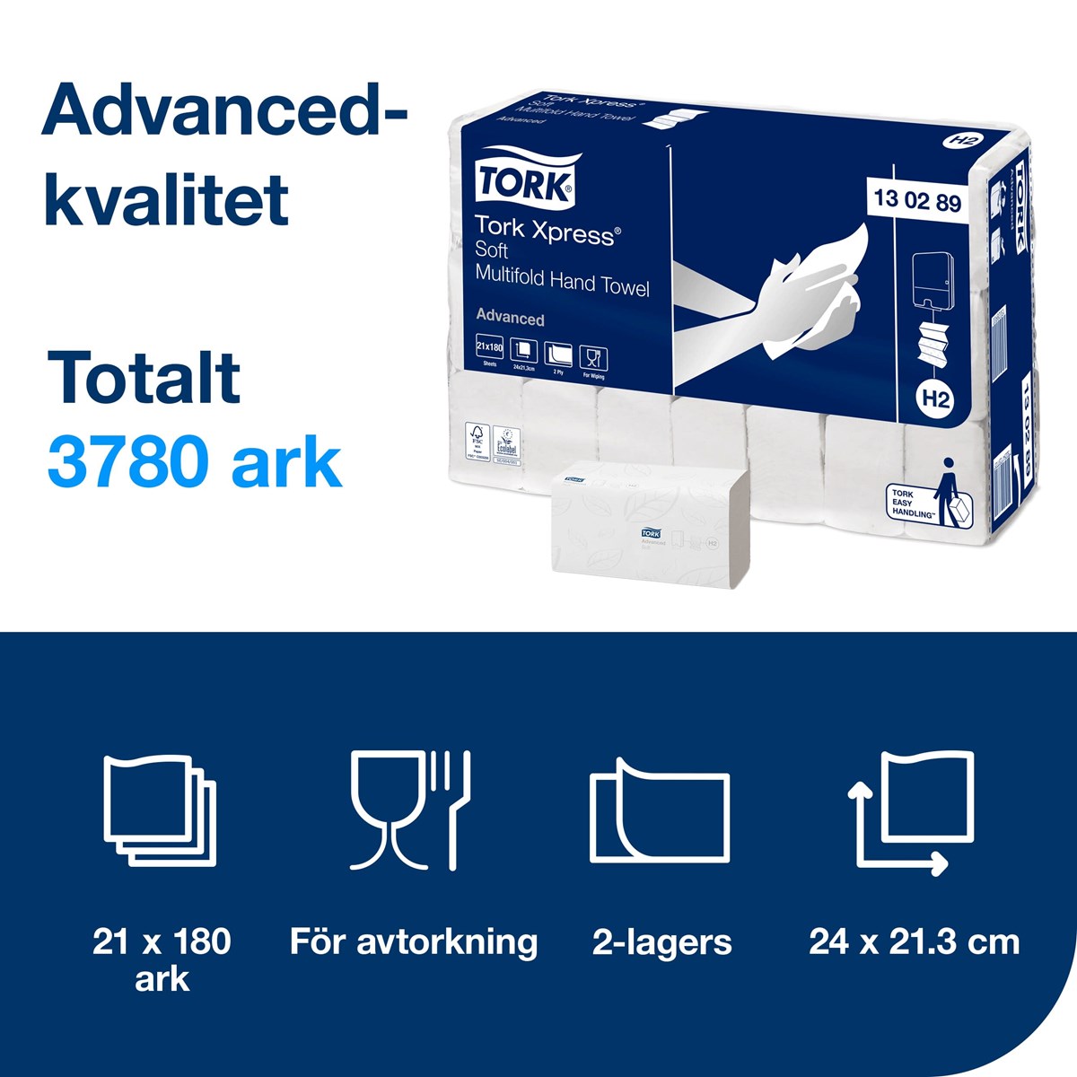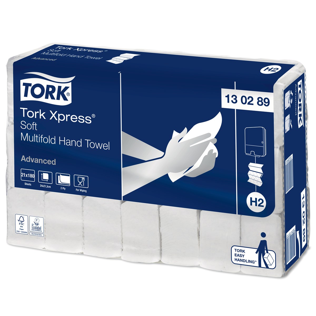Med behagliga Tork Xpress® Mjuk Multifold Handduk i Advanced design får dina besökare en bekväm och utmärkt handavtorkning. Handdukarna är skonsamma mot huden och förmedlar en känsla av hög kvalitet. De passar i Tork Xpress® Dispenser Multifold Handduk för toalettutrymmen med medelhög besöksfrekvens. Dispensern får plats i små utrymmen och erbjuder dina gäster både komfort och hygien. 2-lags vitt papper. Lövmönstrad dekor i grått. Mått: 24x21,3 cm.