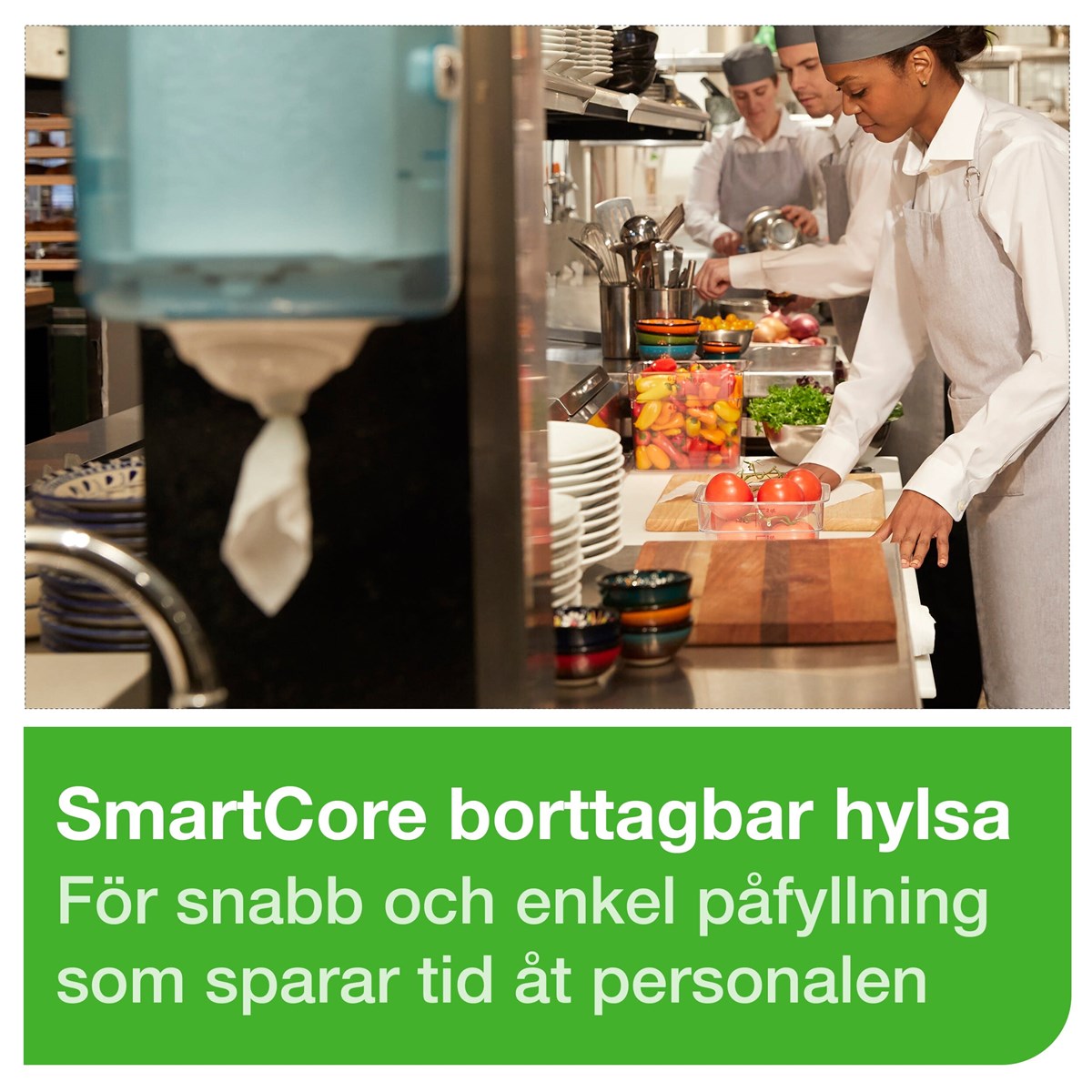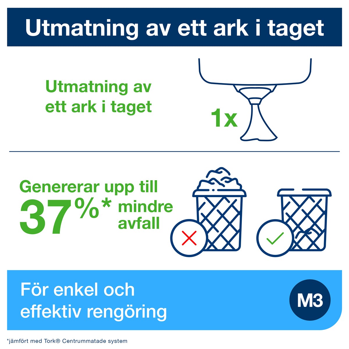Minskar korskontaminering då användare endast vidrör det som de själva använder Hållbar, kompakt lösning som sparar plats Ekonomiskt arkmatningssystem Tork slutindikator möjliggör effektiv påfyllning