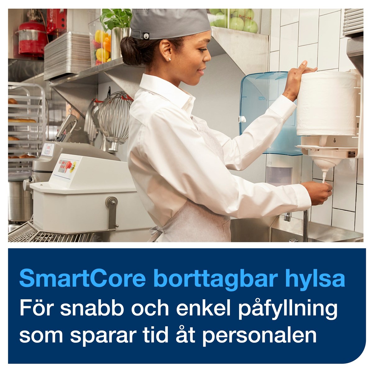 6 rullar med 895 ark vardera. 1-lagers. Advanced-kvalitet. Storlek på rulle: D 299.825 m, B 19.4 cm. Arkets längd: 33.5 cm. Hylsa inre diameter: 5.9 cm. Passar med M4 dispensrar.