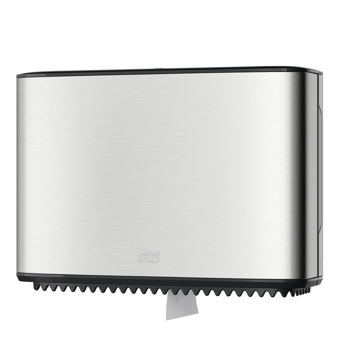 Modern och stilren design i rostfritt stål Hög kapacitet som minskar underhållstiden Sluten dispenser för förbättrad hygien Optimal rullbroms och rullhållare för restpapper som minimerar avfallet