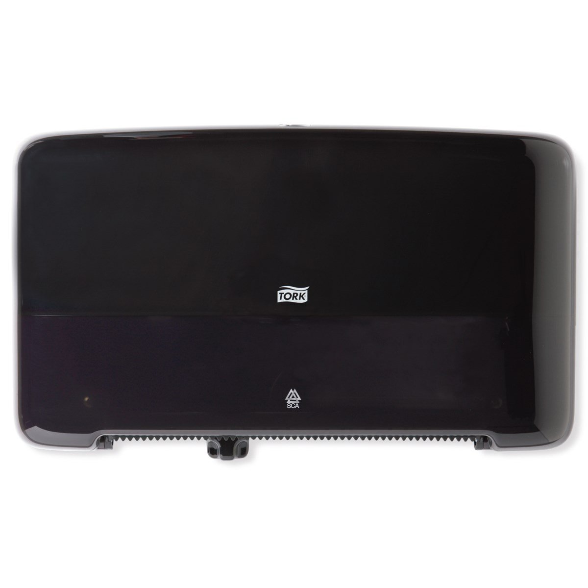 Modern hållare med hög kapacitet. För två Mini Jumbo T2-rullar. En rulle i taget används. Tillverkad i kraftig plast, låsbar. Mått: (H x B x D) 25,6 x 43,2 x 14,6 cm.